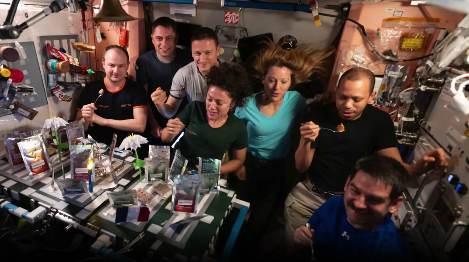 Después de unas semanas intensas en el espacio, la tripulación de la ISS celebró un momento especial compartiendo una cena conjunta propuesta por la astronauta Sophie Adenot de la ESA. Esta tradición, conocida como “bonus food”, permite a cada astronauta colaborar con chefs de prestigio para diseñar platos únicos reservados a ocasiones especiales durante las misiones espaciales.