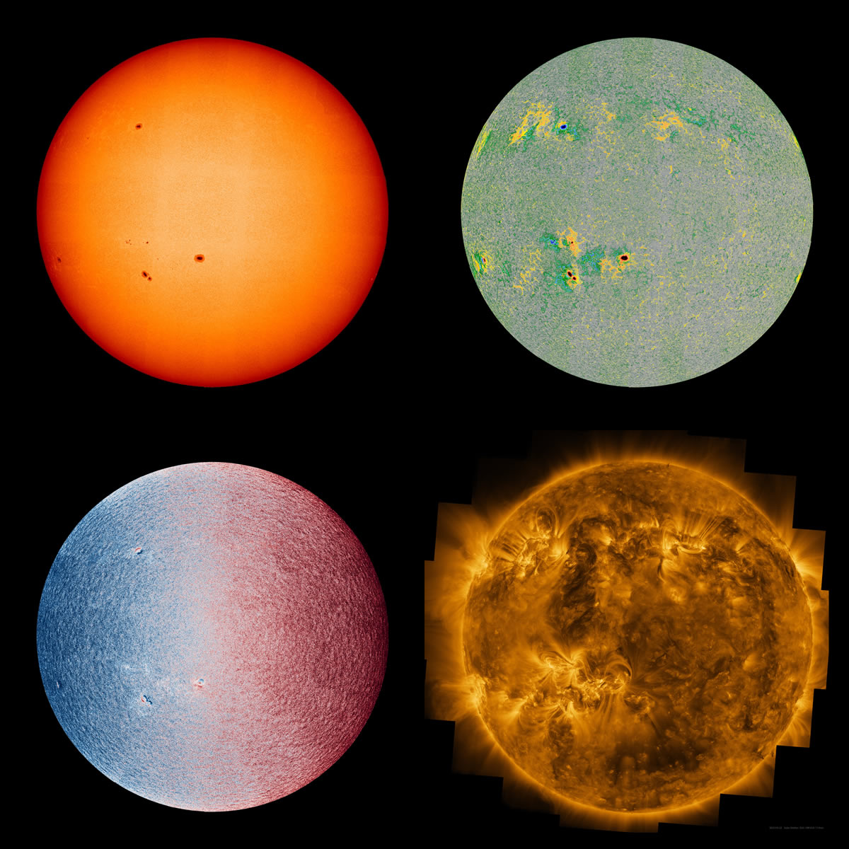 Para obtener las imágenes del disco completo que se presentan aquí, todas las imágenes se unieron como un mosaico. El mosaico PHI y el EUI está compuesto de 25 imágenes cada uno, capturadas durante un período de más de cuatro horas. El disco del Sol tiene un diámetro de casi 8.000 píxeles en los mosaicos completos, lo que revela una increíble cantidad de detalles.
