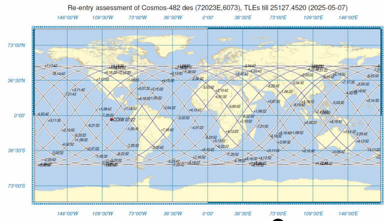 La Agencia Espacial Europea (ESA) anunciaba el pasado jueves que la cápsula espacial soviética Cosmos-482 iba a realizar un reingreso no controlado en la atmósfera terrestre este sábado 10 de mayo. La nave, lanzada hace 53 años con destino a Venus, acabó atrapada en órbita terrestre tras un fallo en su lanzamiento.