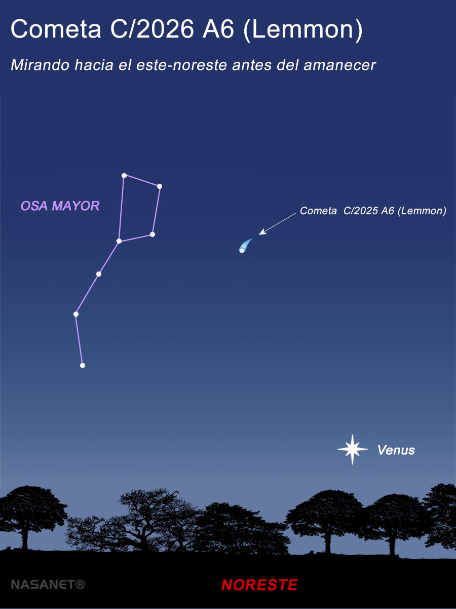 Actualmente, Lemmon puede verse en el cielo de la mañana, aproximadamente una hora y media antes del amanecer. Sin embargo, a partir del 16 de octubre, comenzará a aparecer también en el cielo vespertino, justo después del atardecer. Esa misma noche, pasará cerca de la estrella Cor Caroli, en la constelación de los Canes Venatici, lo que puede ayudar a localizarlo fácilmente. La mejor ventana para observarlo será entre el 22 y el 28 de octubre, cuando estará bajo en el horizonte del oeste-noroeste poco después del anochecer y la Luna no interferirá significativamente con su visibilidad.