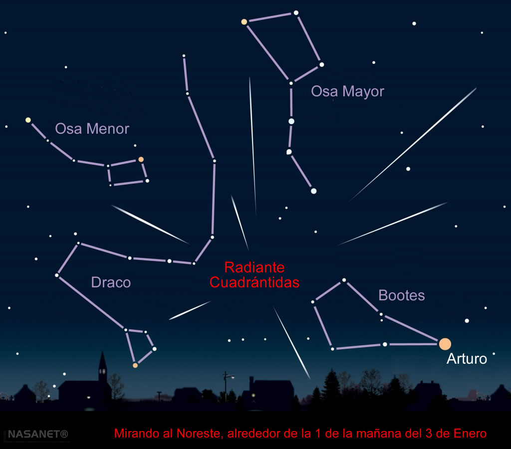 Se espera que las Cuadrántidas alcancen su pico máximo la noche del 3 al 4 de Enero. Sin apenas luz de Luna que interfiera, esta podría convertirse en una de las mejores exhibiciones de meteoros del año. El mejor momento para su observación se producirá en las horas cercanas al amanecer, porque el radiante se encontrará más alto en el cielo.