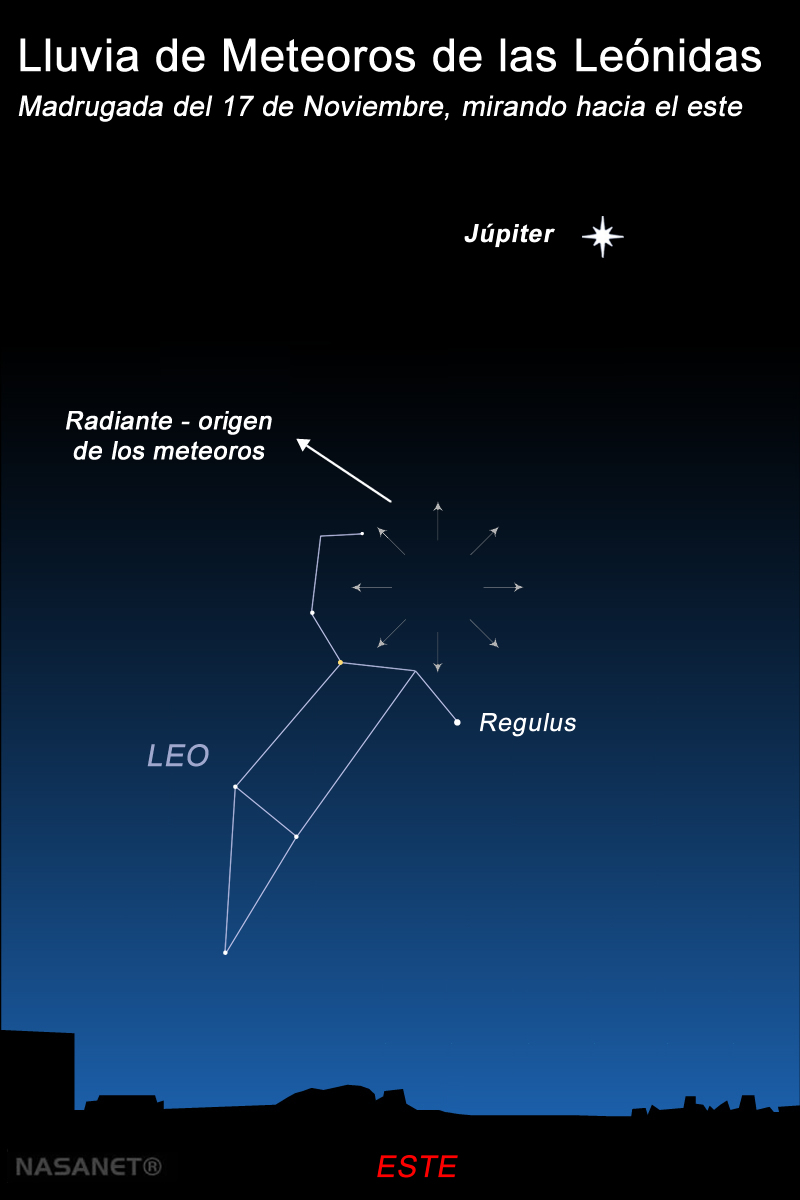 La lluvia de meteoros de las Leónidas volverá este año con uno de los cielos más favorables de la temporada debido a la escasa presencia de la Luna. Aunque su actividad se extiende desde principios de noviembre hasta comienzos de diciembre, su pico máximo de observación o el momento de mayor intensidad será la noche del 16 al 17 de noviembre, especialmente durante la madrugada, cuando el punto radiante —situado en la constelación de Leo— asciende en el cielo y los meteoros se vuelven más visibles.