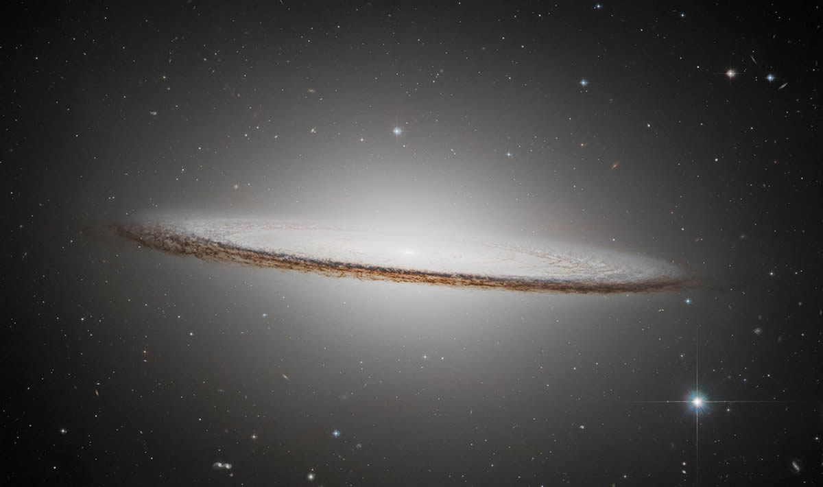 Situada a unos 30 millones de años luz de distancia en la constelación de Virgo, la Galaxia del Sombrero es reconocible al instante. Vista casi de lado, la protuberancia suavemente luminosa de la galaxia y el disco nítidamente delineado se asemejan a la corona redondeada y el ala ancha del sombrero mexicano del que la galaxia recibe su nombre.