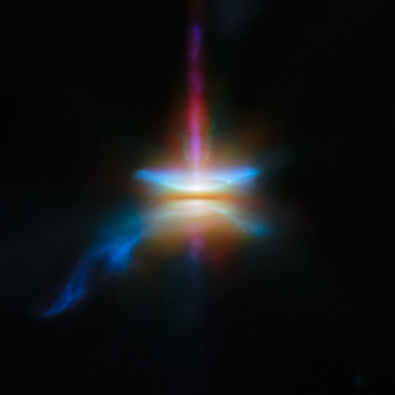 Además del comportamiento de los granos de polvo, las imágenes de Webb, el Hubble y ALMA revelan varias estructuras distintas que están anidadas unas dentro de otras. Un chorro de gas de alta velocidad emerge en un ángulo de 90 grados desde el estrecho disco central. El estrecho chorro está rodeado por un chorro cónico más ancho. Envolviendo el chorro cónico hay una nebulosa ancha que refleja la luz de la estrella joven que está incrustada en el disco. En conjunto, estos datos revelan que HH 30 es un lugar dinámico, donde tanto pequeños granos de polvo como chorros masivos juegan un papel en la formación de nuevos planetas.